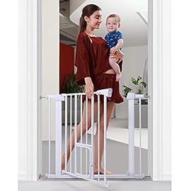 Cumbor 38.5″ Auto Close Safety Baby Gate, Extra Tall Durable Dog Gate with Door, Easy Walk-Thru Child Gate for The House, Stairs, Doorways & Hallways. Includes 4 Wall Cups & (2) 2.75- Inch Extension