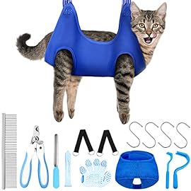 Ferraycle 14 in 1 PET Grooming Hammock for Dogs Cats,cat Grooming Hammock Cat Nail Clipper with Cat Hammock Restraint…
