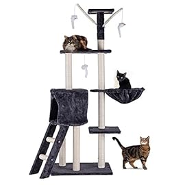 CO-Z 5 Levels Cat Tower Tree House Kitty Scratcher Play House Furniture Stain-Resistant Condo 5 Tiers with Toys (Dark Brown)