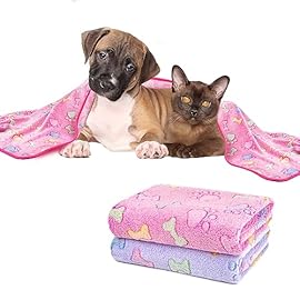 Dono 1 Pack 2 Dog Blankets Soft Fluffy Cute Bone Pattern Fleece Pet Blanket Warm Sleep Mat Cute Print Design Puppy Kitten Blanket Doggy Mat Paw Print for Animals