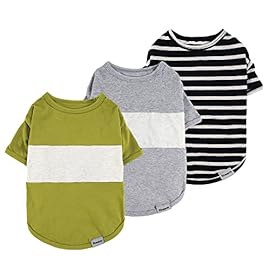 Fitwarm Color Block Striped Dog Shirt, Summer Dog Clothes for Small Dogs, Breathable Lightweight Pet Tshirt with Sleeves, Cat Outfit