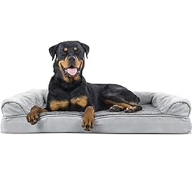 Furhaven XL Orthopedic Dog Bed Two-Tone Faux Fur & Suede L Shaped Chaise w/ Removable Washable Cover – Espresso, Jumbo…