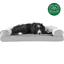Furhaven Pet Dog Bed | Orthopedic Ultra Plush Faux Fur & Suede Sofa-Style Living Room Couch Pet Bed for Dogs & Cats, Gray, Large