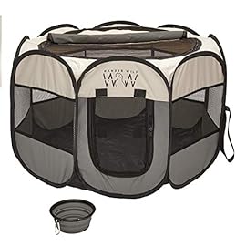 Wolf In Winter Upgraded Portable Foldable Pet Playpen – Removable Roll Up Shade Cover, Carry Case and Free Travel Bowl…