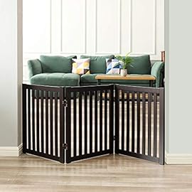 WELLAND 24″ Freestanding Pet Gate, Foldable Indoor Wooden Dog Puppy Gate, 3 Panel Step Over Fence, Expands Up to 60″ Wide, Espresso
