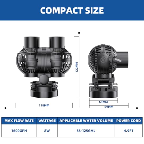 Powerful Magnet for Convenient Installation: The powerhead’s installation is achieved with a powerful magnet, without the need for complex tools or steps. You can easily fix the fish tank pump in the appropriate position of your aquarium.