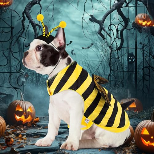 Super Cute Bee Dog Halloween Costume: Buzz into Halloween 2025 with this adorable bee costume for dogs! The bold yellow and black design adds a playful sting to the spooky season. Whether your pup is strolling the block or joining the fun, this cute and unique outfit is sure to turn heads and earn endless compliments