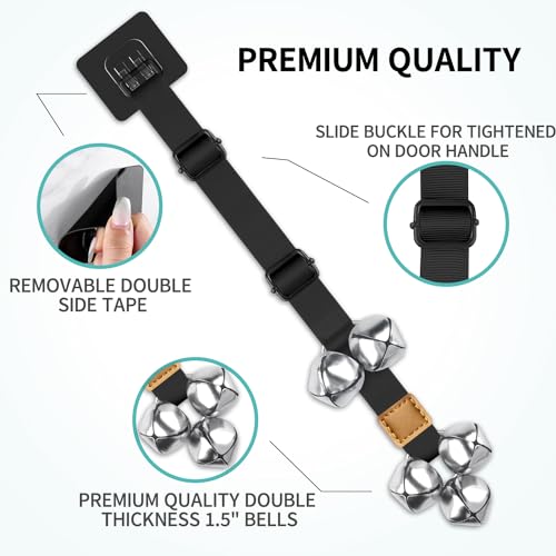 ADJUSTABLE LENGTH-Use a buckle to adjust the strap is more long-lasting than snap button which easy to pull out from a dog bell strap. Besides, you will get wide range adaptability by sliding the buckle(26.5”-40”),not 2 or 3 points on the straps. This allows for easy adjustment of the length to the bottom of the door or wall based on the size of your dog or the height of your door. Small dogs,medium dogs,big dogs and large dogs all love excell with our dog bells!
