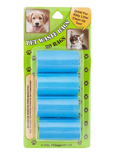 LITTER BAGS FOR PETS: 4 rolls of bags with 20 bags on each roll for a total number of 80 bags..