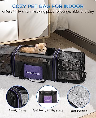 BurgeonNest Expandable Cat Carrier Large, Pet Carrier Unfold to Use As a Cute Cat Tunnel, Collapsible Cat Bag 18x11x11 inch for Cats Under 20 lbs and Small Puppy / 19.7X12.2X13.8 inch for Medium Cats Under 25 lbs or Small Dogs