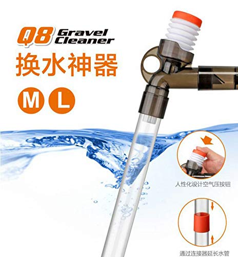 Feature: 100% brand new and high quality. 1.This fish tank cleaner can be split into different parts and you can adjust and modify them as per your needs. It’s quite easy to clean and store. 2.There are two inlet pipe 11.8inch and 15.7inch, which can be extend and combined together. The depth of the fish tank it fits is 32.2inch or less. Can fully meet the needs of your big aquarium. 3.Safe for Your Lovely Fish,This Fish Tank Siphon Pump Takes the Waste out while Replacing the Water; Will Not Hurt any Aquarium Life when in use! Come with a Filter Basket to prevent absorbing of juvenile fish, grass and gravel. Specifications: Length of the Inlet Tubes: 30cm + 40cm Length of the Soft Outlet Tube: 180cm USAGE STEPS: 1.Connect the inlet and outlet pipe. 2.Put in a suitable location. 3.Press the air-pressing button with fingers lightly. 4.Absord the residue. Notes: 1.Please clean the internal garbage regularly 2.Please check for air leakage when connecting the pipe 3.The outlet pipe cannot bend when using 4.When you use the gravel cleaner, please lets the water outlet lower than the inlet when in use (at least 19.6inch). Package Included: 1 x Aquarium Gravel Cleaner 1 x Water Flow Clamp 1 x Fixture Clamp