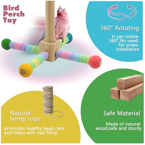 Easy to Install:The upgraded cockatiels stand rotating perch toy is easy to install and can be quickly installed and used without tools!