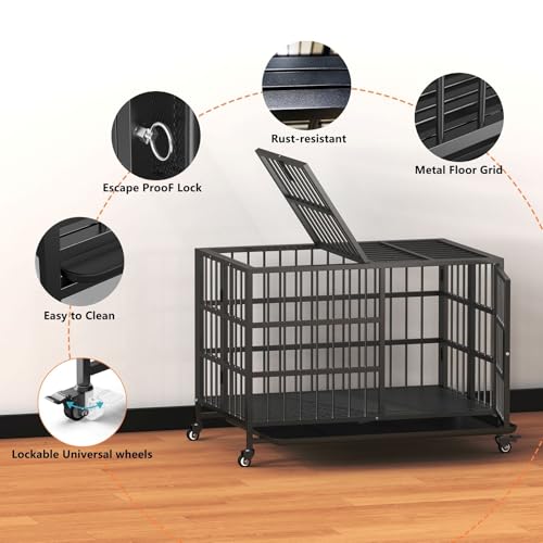 【Easy to Assemble and Use】The dog crates for large dogs adopts a special patented design, which is a collapsible dog crates for small dogs, say goodbye to the cumbersome and complicated installation procedures, you only need to open the small dog crate and twist 4 screws to assemble the xl dog crate, the xxl dog crate with four heavy duty plastic wheels can better facilitate your movement and fixation, it is really convenient for you to use.