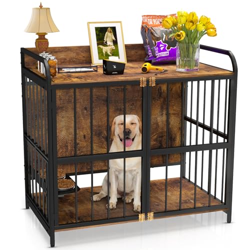 PLENTY OF ROOM TO MOVE: Overall dimensions are 39.4 “L x 23.6 “W x 35.8 “H. This dog crate can hold up to 220 lbs and is perfect for small dogs, medium and large dogs. Please check the size of your dog before purchasing this dog crate. The front door includes 4 Bolts and 4 Latch, so you can place your pet inside the Dog Crate without worrying about it messing up your home again while you’re cleaning.