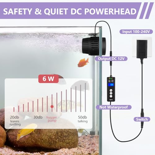 Safety DC Pump:With a DC 12V 6W powerhead, the max flow rate up to 792 GPH, it provides plenty of flow while remaining quiet. Also comes with a hard cover for the intake to prevent small fish and anemones from getting sucked in