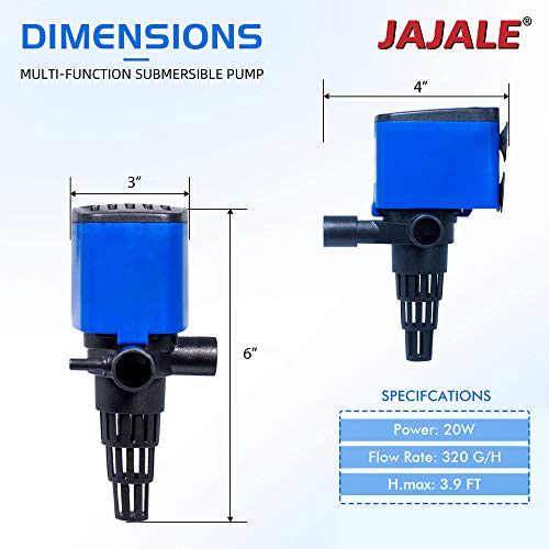 This pump is epoxy sealed and passes the voltage withstand test in compliance with the UL standard. 100% inspection is fulfilled for Quality Control according to ISO. While working, they are incredibly quiet and efficient and energy-saving with high lift. Max Head: 3.11 ft (1.2m). The maximum flow can reach 320 GPH – 1200 L/H. 20w Power Consumption.