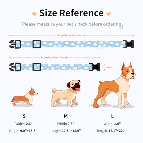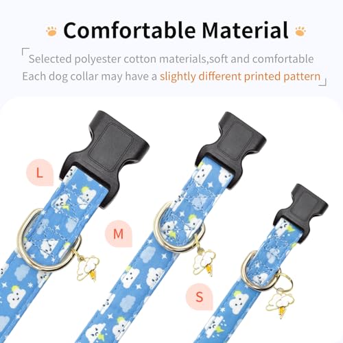 【Fashion Design】: The dog collar is designed with flower patterns and cute pendant,suitable for all breeds, boys, girls, males and females.Our lightweight and breathable dog collar resists daily wear and tear while showcasing vibrant, unique, vivid, and stylish patterns that stand out on your dog.