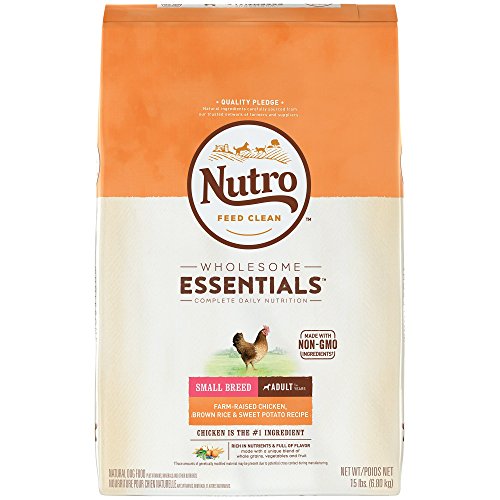 NUTRO WHOLESOME ESSENTIALS Small Bites Lamb Adult Dry Dog Food NUTRO WHOLESOME ESSENTIALS Small Bites Dog Food is formulated to be complete and balanced nutrition for adult dogs that prefer smaller kibble. Pasture-fed lamb is the first ingredient and provides high quality protein. Peas and chickpeas are great simple carbohydrates that are easy to digest. This natural dog food provides natural fiber for healthy digestion and essential antioxidants, such as Vitamin E, for a healthy immune system. Vitamins, minerals, and other nutrients round out the ingredient panel. This recipe also promotes healthy skin and a soft, shiny coat. Made with no artificial flavors, colors, or preservatives, your best friend will love the delicious taste. Features: Made in the USA For adult dogs of all breeds that prefer smaller kibble Made with pasture-fed lamb Natural and wholesome recipe Promotes a healthy immune system Great for skin and coat Contains no artificial flavors, colors, or preservatives Formulated to meet the nutritional levels established by the AAFCO Dog Food Nutrient Profiles for adult maintenance Item Specifications: Flavor: Lamb Guaranteed Analysis: Crude Protein (min.): 22% Crude Fat (min.): 14% Crude Fiber (max.): 3.5% Moisture (max.): 10% Linoleic Acid (min.): 3.5% Zinc (min.): 250mg/kg Selenium (min.): .35mg/kg Vitamin E (min.): 60 IU/kg Niacin (min.): 250mg/kg Biotin (min.): 2.5mg/kg Calories: 3543 kcal/kg, 344 kcal/cup Ingredients: Deboned Lamb, Lamb Meal, Brewers Rice, Rice Bran, Split Peas, Chickpeas, Whole Brown Rice, Whole Grain Oatmeal, Pea Protein, Natural Flavor, Chicken Fat (preserved with Mixed Tocopherols), Sunflower Oil (preserved with Mixed Tocopherols), Potassium Chloride, Salt, Choline Chloride, DL-Methionine, Mixed Tocopherols and Citric Acid (preservatives), Taurine, Zinc Sulfate, Niacin Supplement, Biotin, Vitamin E Supplement, Iron Amino Acid Chelate, D-Calcium Pantothenate, Selenium Yeast, Riboflavin Supplement (Vitamin B2), Copper Amino Ac