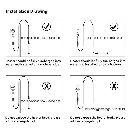 ★【Note】: The heater needs to be fully submerged, the external controller is not waterproof, and children need to be used under the supervision or guidance of adults.