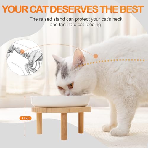 【Reduce Neck Burden】: the bamboo frame raises the cat feeding plates ceramic to a more convenient height, your cat could comfortably eat and drink without having to strain his neck down, reduce the pressure on the neck or back. It also helps with swallowing and digestion. Alleviates their occasional vomiting. The elevated cat dish stand with anti slip feet make it stable and does not slide easily, it prevent your pet from sliding bowls around and provide protection for your floors.