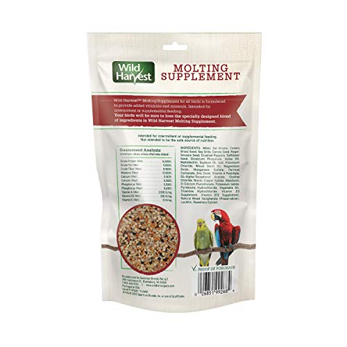 DIETARY SUPPLEMENT: Use Wild Harvest Molting Supplement to provide added vitamins and minerals to your bird’s regular daily diet.