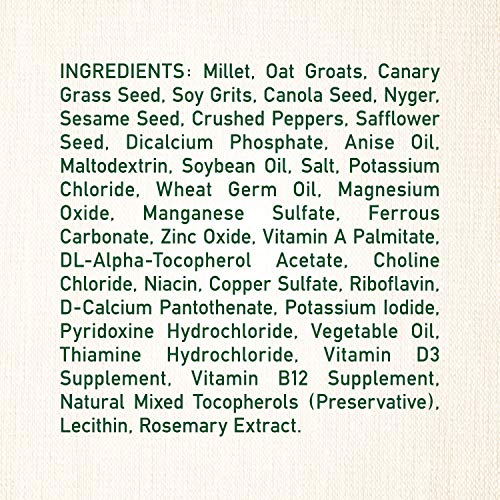 FOR ALL BIRDS: Specially designed blend of ingredients, including millet, oat groats and canary grass seed.