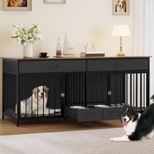 Multi storage Dog Cage: The dog crate furniture comes with 2 large drawers to conveniently store dog food; Can be used as TV cabinets and side tables while the wide top accommodates various items or decorations to tidy up your home and meeting the needs of you and your dog