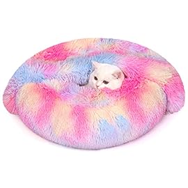 Somkaco Washable Dog Bed Round Cat Bed Calming Dog Bed Anti Anxiety with Removable Cover Fluffy Faux Fur Cute Rainbow Donut Dog Bed for Dogs and Cats Small Medium Easy to Clean Machine Wash