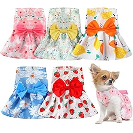 5 Pieces Dog Dresses for Small Dogs Girls Floral Puppy Dresses Pet Dog Princess Bowknot Dress Cute Doggie Summer Outfits…