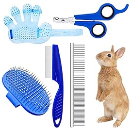 5 Pieces Rabbit Grooming Kit,Rabbit Grooming Brush,Pet Bath Comb Brush,Pet Nail Clipper,Pet Comb for Rabbit,Hamster…