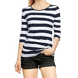 Allegra K Women’s Elbow Sleeves Top Round Neck Slim Fit Tee Casual Printed T-Shirt