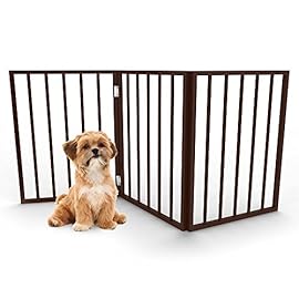 Foldable, Free-Standing Wooden Pet Gate- Light Weight, Indoor Barrier for Small Dogs / Cats by PETMAKER- 24 Inch, Dark Brown, Step Over Doorway Fence
